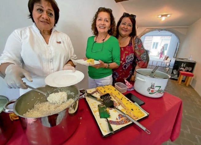 Rosa Krause, Diana Rocha-Schäfer und Jeanette de Fareso (von links) vom Verein Projektpartnerschaft Dritte Welt präsentieren Speisen ihrer peruanischen Heimat. Bild: Barbara Kutsch - Saarbrücker Zeitung