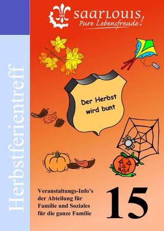Auch in den diesjährigen Herbstferien führt die Kreisstadt Saarlouis, Abteilung Familie und Soziales, in Zusammenarbeit mit verschiedenen freien Trägern, sozialen Einrichtungen, Bildungsträgern und Vereinen ihren traditionellen Herbstferientreff durch. Vom 17. bis zum 31. Oktober können Jung und Alt aus unterschiedlichen Angeboten und Aktionen wählen.