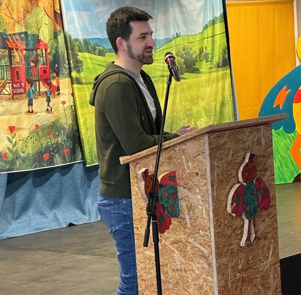 Andreas Obster, Leiter der Volkshochschule Saarlouis, die das Projekt für die „faire und nachhaltige Europastadt Saarlouis“ durchführt, erläuterte kurz die Inhalte. Referent Daniel Boost, Künstler und Sozialarbeiter erklärte in einfacher Sprache den Kindern, wie der Workshops aufgebaut sein wird.