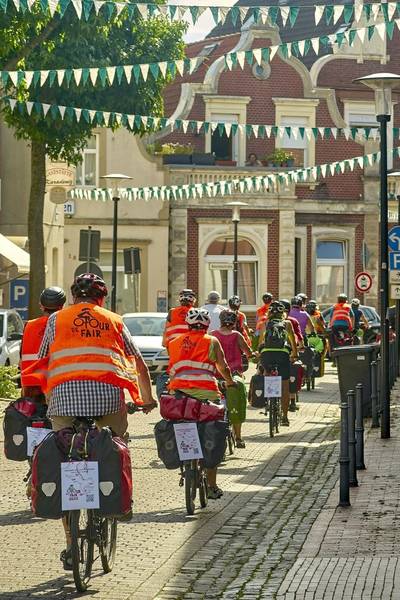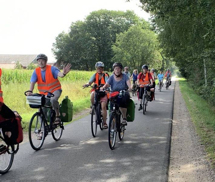 Die Teilnehmer*innen der „Tour de Fair 2022“ radeln für den Fairen Handel durch die Grafschaft Bentheim. (Bild: Christoph Albuschkat)