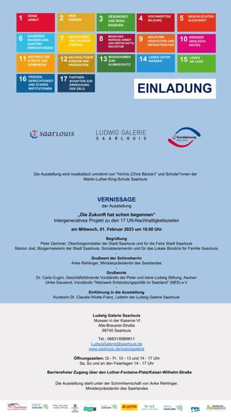 Wir laden Sie zu unserer Vernissage am 01.02.23, um 18.00 Uhr, in die Ludwig Galerie Saarlouis – Museen in der Kaserne VI, recht herzlich ein. Alle weiteren Informationen entheben Sie bitte der beigefügten digitalen Einladungskarte.