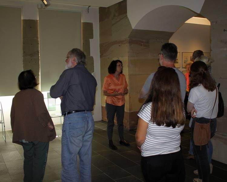In der öffentlichen Führung ging Museumsleiterin Dr. Claudia Wiotte-Franz näher auf die Werke der sechs ausgestellten Kinderbuch-Illustratoren ein. Bilder: Sven Mohr