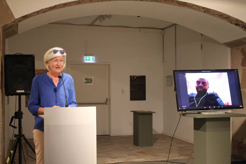 Während der gesamten Zeit der Finissage gab es einen Livevideochat zwischen der Ludwig Galerie in Saarlouis und dem "Riruma helping center" in Kenia. Zugeschaltet in Kenia war Sozialarbeiter, Gemeindevermittler und Leiter des Kinderheims und Organisation „Riruma helping center“, Benard Momanyi Ombati. Er berichtete über die Einrichtung in Kenia und die Herausforderungen der Arbeit vor Ort. Begonnen hatte das Projekt im Jahr 2007 mit drei Kindern. Aktuell werden 28 Kinder betreut im Alter von drei bis 17 Jahren - davon 10 Weisen, 3 haben eine Behinderung und 15 stammen aus armen Familienverhältnissen. Unter widrigen Umständen und angewiesen auf Spendengelder werde alles versucht, um den Kindern unter anderem eine ausreichende Ernährung, sauberes Trinkwasser, Schulbindung und somit Chancen auf dem Ausbildungsmarkt und Wohnraum für eine Altersgerechte Entwicklung bereit zu stellen und zu ermöglichen. Dank der Spendenbereitschaft seien bislang schon viele Aktionen erfolgreich umgesetzt worden, jedoch fehle es derzeit noch an Geldern zum Weiterbau nötiger Schlafstellen für die Kinder. Zur Freude aller Besucher der Finissage, konnte die Leiterin der Ludwig Galerie Saarlouis Benard Momanyi Ombati mitteilen, dass um die 350 Euro an Spendengelder im Rahmen der Ausstellung für das Projekt "Riruma helping center" gesammelt werden konnten. Als besonderen Gruß sendeten die Kinder des "Riruma helping center" einen Musikalischen Beitrag über die virtuelle Welt nach Saarlouis.