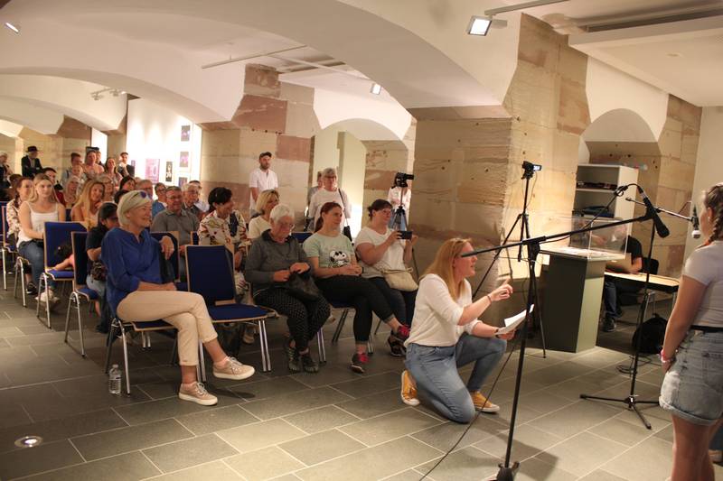 Stolz blickte die Leiterin der Ludwig Galerie Saarlouis auf die nun zu Ende gehende Ausstellung zurück. Das intergenerative Projekt verfolgte die Zielsetzung, dass die Teilnehmer*innen sich intensiv und bewusst mit den 17 UN-Nachhaltigkeitszielen auseinandersetzten. Zahlreiche Teilnehmende, darunter Einzelpersonen, Gruppen, Institutionen, hatten sich in den vergangenen Wochen und Monaten kreativ und künstlerisch mit einem oder mehreren der 17 UN-Nachhaltigkeitszielen auseinandergesetzt. In den Räumlichkeiten der Ludwig Galerie konnten so über 120 Werke in Präsenz ausgestellt werden. Auch das Alter der Teilnehmer sei laut Dr. Claudia Wiotte-Franz intergenerativ - von drei bis 85 Jahren. Auch die Wahl der kreativen Beiträge sei beachtlich gewesen - auch von den Materialen her. Neben der Präsenzausstellung, welche an zeitliche Grenzen gebunden ist, wurde parallel eine Online-Ausstellung aufgebaut, welcher sich auf der Internetseite des Lokalen Bündnis für Familie in Saarlouis befindet und auch alle eingebrachten Werke mit zusätzlichen Hintergrundinformationen zeigt. Mit 2300 Besucher_innen bei über 60 Veranstaltungen, sei die Ausstellung sehr gut angenommen worden. Zu einem der zwei musikalischen Beiträge des Abends gehörte die Aufführung des Nachhaltigkeitsrap der Schüler_innen der "Martin-Luther-King-Schule Saarlouis". Song und Musikvideo entstanden in Kooperation mit dem Quartiersmanagement Fraulautern. Die Beats stammen von Chris Bäcker, der auch die Produktion des Songs und des Musikvideos verantwortete. Mit diesem Rap konnten schon einige Preise gewonnen werden wie der Axel-Buchholz-Preis in der Kategorie Online/Digital oder auch der Nachhaltigkeitspreis des Landkreises Saarlouis.