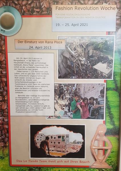 Am 23. April 2021 jährt sich der Einsturz der Textilfabrik Rana Plaza in Bangladesch zum 8. Mal. Bei diesem bisher größten Unfall in der Textilindustrie starben ca. 1.100 Menschen (meist Frauen). Als Reaktion erschien die Fashion Revolution-Bewegung, die uns auf Menschenrechte, faire Arbeitsbedingungen sowie den Umweltschutz in der Textilindustrie aufmerksam macht.