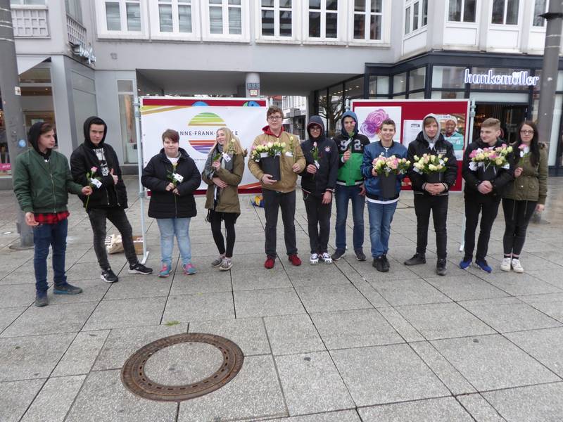 Fairtrade-Schulteam der Anne-Frank-Schule Saarlouis verteilte zum Weltfrauentag 200 fair gehandelte Rosen.