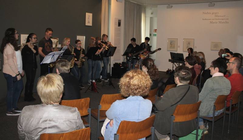 Zum Beginn der Ausstellung "Nichts gegen Männer ..." luden das Lokale Bündnis für Familie in Saarlouis und das Museum Haus Ludwig zu "Ludwig´s Kunst-Café" ein. Neben den Karikaturen und Zeichnungen von Marie Marck wurde den über 100 Besucher_innen ein umfangreiches und attraktives Rahmenprogramm geboten. An diesem Nachmittag gaben nicht nur die Werke der Karikaturistin Gelegenheiten zum Schmunzeln.