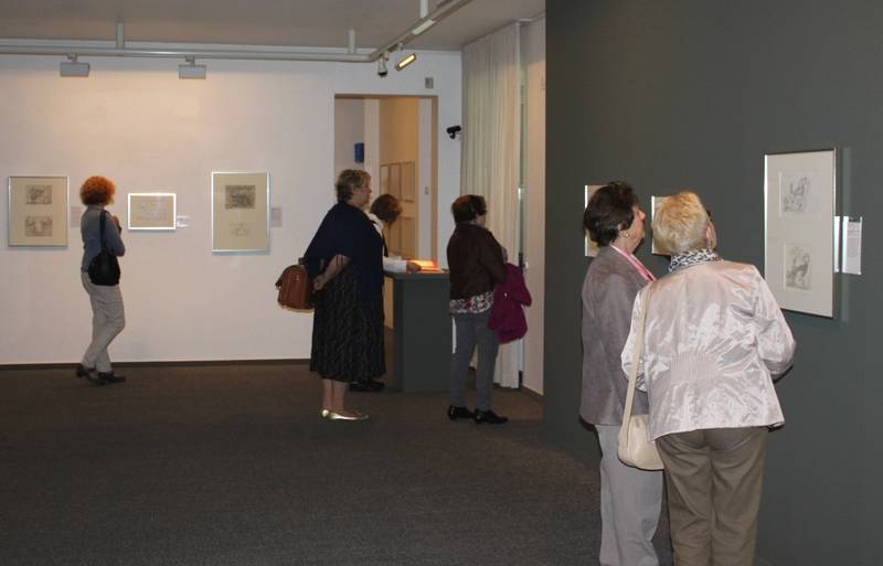 mit Tusche, Feder, Bleistift, Farbstifte und einer guten Auffassungsgabe erstellte Marie Marcks, 1922 in Berlin geboren, ab den 1950er Jahren Karikaturen für größere Zeitungen und Zeitschriften. In ihren Zeichnungen ging sie kritisch auf politische Debatten und gesellschaftliche Diskussionen ein. Eines ihrer wichtigsten Anliegen war die Gleichberechtigung der Frau, welches sie auch zum Thema ihrer Karikaturen machte. Bei einzelnen Bildbetrachtungen zur Ausstellung ging Museumsleiterin, Dr. Claudia Wiotte-Franz, auf einige Themenbereiche der 2014 verstorbenen Karikaturistin ein. Im ersten Obergeschoss des Museums sind die Bilder unter anderem in die Bereiche Europa, Friedenspolitik, Stadt und Umwelt sowie Asylpolitik unterteilt. Schnell wurde den Betrachtern klar, dass diese Karikaturen - obwohl schon über 30 Jahre alt - in unserer heutigen Zeit aktueller denn je sind.