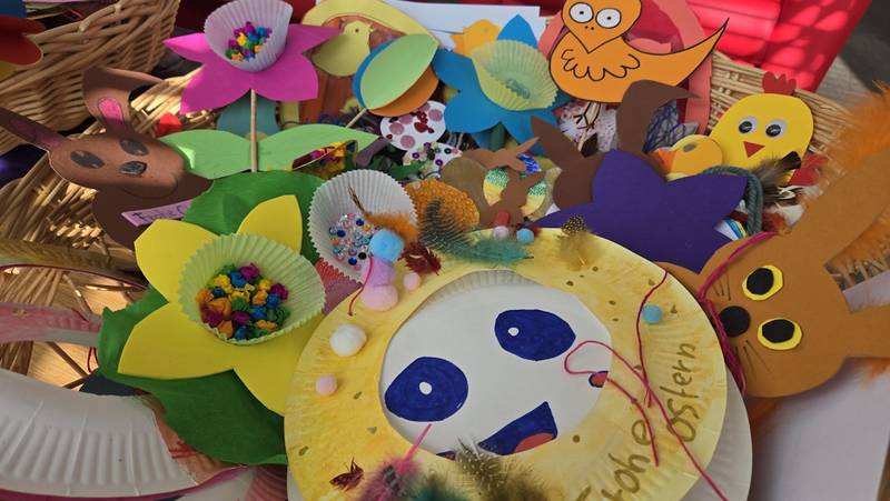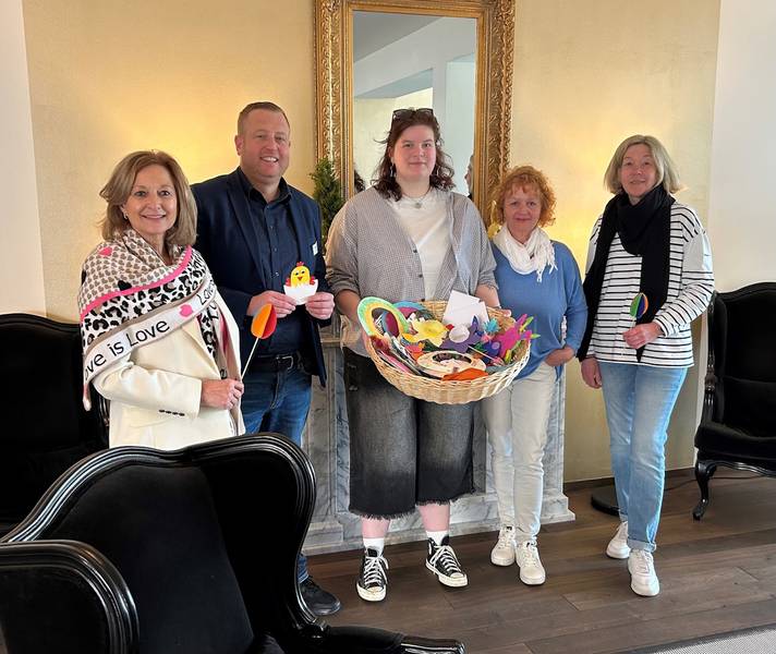 Bunt bemalte Ostereier aus Pappe, Osterhasen aus Eierkarton, Küken aus Wolle, Fensterbilder und viele schöne Bastelideen kamen bei der diesjährigen Osterbastel-Aktion zusammen. Es beteiligten sich unter anderem Kinder aus der Hausaufgabenhilfe und der Mädchengruppe des Esther-Bejarano-Hauses sowie Saarlouiser Grundschulen, die Kinder- und Jugendfarm und die Tagesgäste der Villa Vivendi. In Treffs, Workshops und im Rahmen eines Schulprojektes fertigten sie fantasievollen Osterschmuck und Dekoration an. Im Sinne der Nachhaltigkeit war es eine besondere Vorgabe, entsprechendes Material zu verwenden. So kamen neben Pappe und Papier auch Papp-Strohhalme, Wollreste, Korken, Kaffeefilter und Papiertüten zum Einsatz. Sabine Schmitt, Anette Plewka und Louisa Stumpf vom Amt für Familien & Soziales überreichten die Basteleien in diesem Jahr gemeinsam mit dem Bürgermeister Carsten Quirin und den Schulkindern den Seniorenheimen. In der Sonnenresidenz, wo eine weitere Schulklasse zeitgleich eintraf, wurde darüber hinaus noch eine gemeinsame Bastelaktion mit Kindern und Senioren veranstaltet.