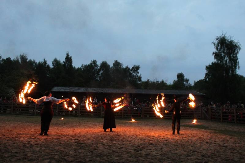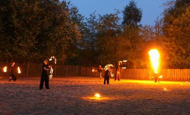An diesem Nachmittag folgte ein Höhepunkt auf den nächsten. Zaubermeister “Maxim Maurice“ präsentierte auf der Bühne einige seiner Kunststücke. Mit dem ein oder anderen kleinen Zaubergehilfen entführte er Klein und Groß in die zauberhafte Welt der Magie. Abgerundet wurde das Hexenfest durch eine Feuershow der Gruppe "Les enfants du feu". Sie verwandelten die Kinder- und Jugendfarm mit einer außergewöhnlichen Performance aus Feuer, Tanz und Akrobatik in einen Hexenkessel und erhielten für ihre sehr gelungene Show von einem begeisterten Publikum jede Menge Beifall.