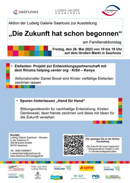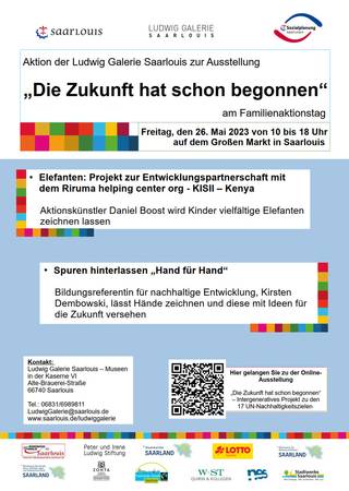Im Rahmen der Saarlouiser Woche findet in diesem Jahr wieder ein Familienaktionstag auf dem Großen Markt in Saarlouis, in der Zeit von 10.00 bis 18.00 Uhr statt. An diesem besonderen Tag für die Familie bietet das Team der Ludwig Galerie Saarlouis eine Aktion zur eigenen Ausstellung „Die Zukunft hat schon begonnen“ an.