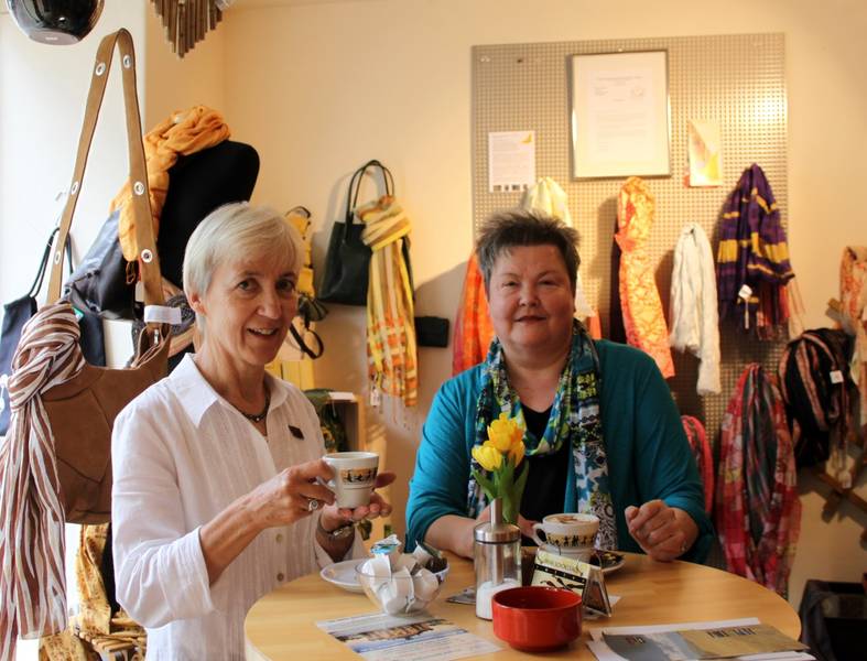 Margrit Schu und Maria Adam engagieren sich als ehrenamtliche Mitarbeiter im Saarlouiser Weltladen „La Tienda e.V.“ ( v.l.n.r. )