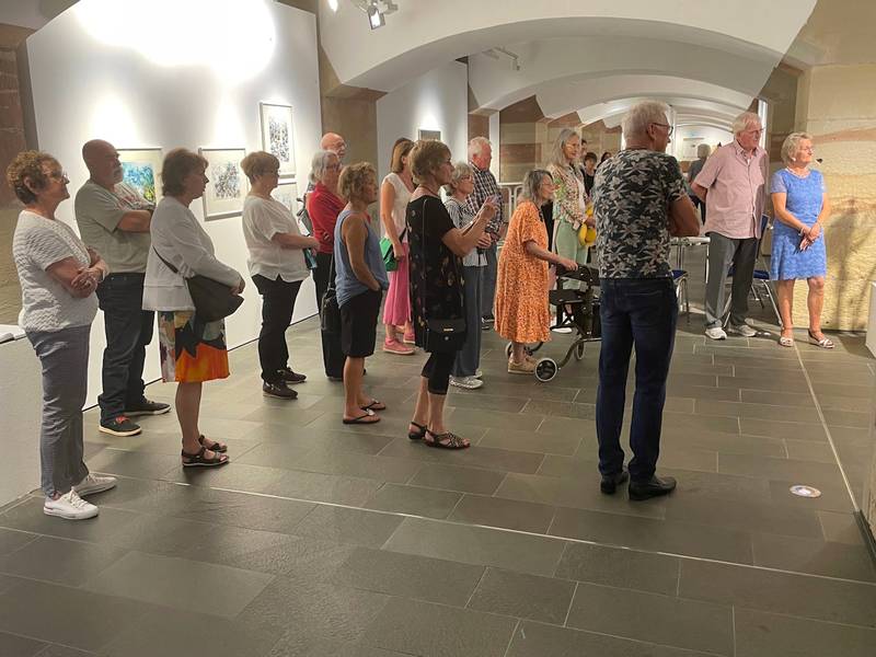 Noch ein letztes Mal die Ausstellung „Komplementär VII“ der beiden Künstlergruppen „Künstlergruppe Untere Saar e.V.“ und „Kunst Forum Saarlouis e.V.“ besuchen. Das ermöglichte am 18.08.2024, dem letzten Museumssonntag der Ausstellung, die Ludwig Galerie Saarlouis interessierten Besucher*innen. Rund 50 Besucher*innen konnten im Rahmen einer Führung den Erläuterungen und Interpretationen der anwesenden Künstler*innen (Peter Becker, Wolfgang Bier, Roy Gangi, Ellen Kunz, Angela Pontius, Vera Zapp, Maria Andruet, Birgit Körner und Hanne Müller-Scherzinger) folgen.