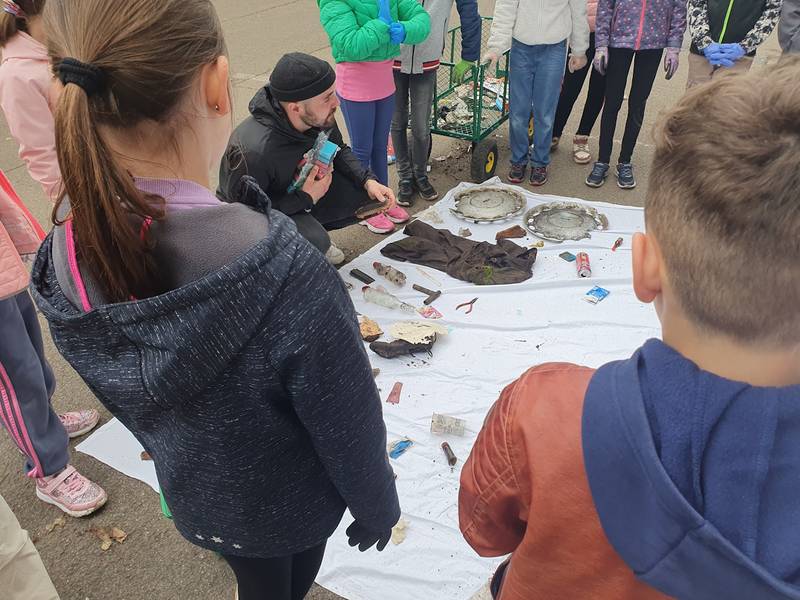 „Oh, wie lange liegt dieser Müll schon hier?“ oder „Wie lange dauert es, bis sich diese Tüte oder diese Flasche komplett zersetzt?“, waren Fragen, die sie unter Anleitung von Daniel Boost klärten. Der Künstler und Moderator des Workshops war erstaunt über die Funde der Kinder: „Bei dieser Schatzsuche haben wir vieles gefunden. Dieses Mal wurden wir sogar mit ein paar Autoreifen belohnt.“