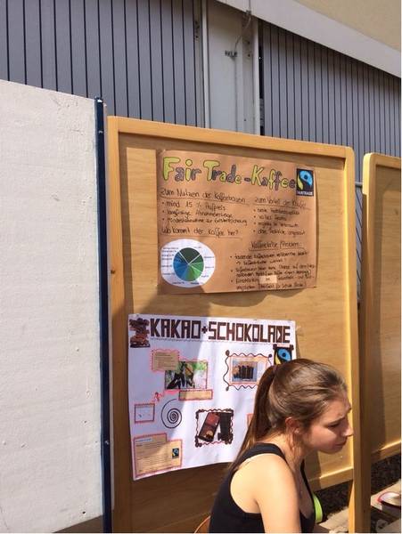 Zusätzlich organisierten die Jugendlichen Pausenverkäufen und eine Tombola, bei denen fair gehandelte Produkte zum Einsatz kamen. Mit selbst gestalteten Plakaten über den Fairen Handel machten sie zusätzlich auf dieses globale Thema aufmerksam. Der Erlös ihrer Verkaufsaktionen wurden an ein Fairtrade-Projekt gespendet. Der Wunsch der Schülerinnen und Schüler ist es, dass durch ihre Einsätze andere für das Thema „Fairer Handel“ aufmerksam werden. Garantiert faire Preise sichern den Bauern weltweit ein angemessenes Einkommen. Durch ein gerechtes Einkommen können Krankenversorgung, Schulbildung auch soziale Projekt finanziert werden, welche auf dem europäischen Markt zur Selbstverständlichkeit gehören.