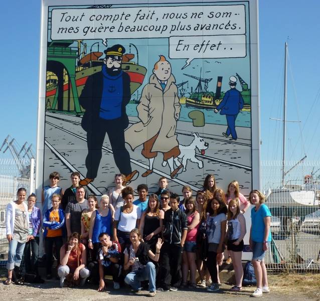 Die deutsch-französische Jugendgruppe bei der Besichtigung des Hafens von Saint-Nazaire. Tim und Struppi waren auch dabei