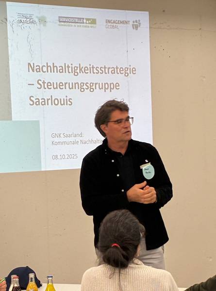 Anfang Oktober traf sich die Steuerungsgruppe, um die zentralen Handlungsfelder und Leitlinien der künftigen Nachhaltigkeitsstrategie zu erarbeiten. Der zuständige Beigeordnete, Gerald Purucker begrüßte die Teilnehmenden: „Ich freue mich sehr, dass wir in Saarlouis gemeinsam als Stadtgesellschaft an einer Nachhaltigkeitsstrategie für Saarlouis arbeiten. Saarlouis soll dabei ein Zentrum sein, von dem diese Idee weiter ausstrahlt. Mein Dank gilt dem Stadtrat, der den Prozess angestoßen hat, sowie dem Bundesministerium für wirtschaftliche Zusammenarbeit und Entwicklung, der Servicestelle Kommunen in der Einen Welt, Engagement Global und dem Institut :response für ihre finanzielle, organisatorische und inhaltliche Unterstützung.“