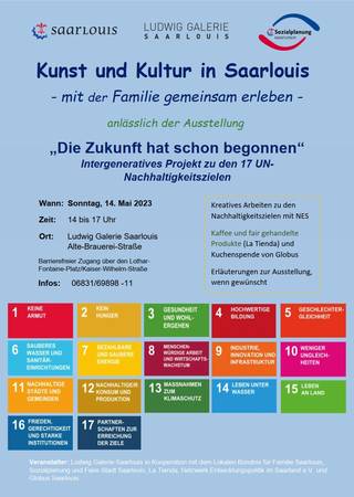 Am Sonntag, 14. Mai 2023 findet ein Familientag in der Ludwig Galerie Saarlouis statt. Zwischen 14 und 17 Uhr erwartet die Besucher ein Programm für die ganze Familie rund um die Ausstellung „Die Zukunft hat schon begonnen“.
